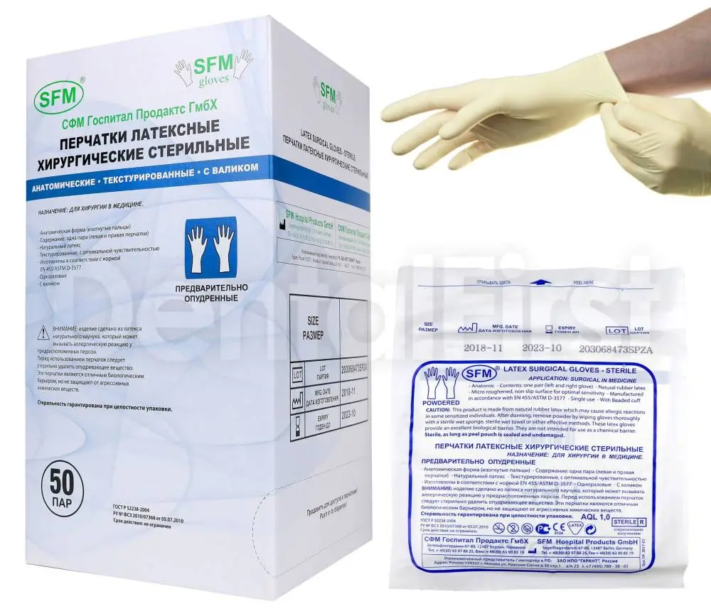 Перчатки хирургические, стерильные SafeCare. Анатомическая форма 6.5 (1 пара)