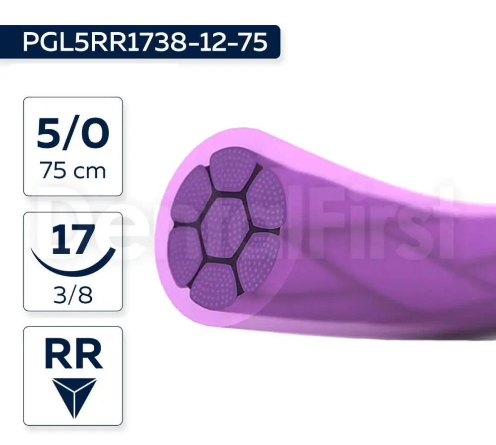 4. / PGL5RR1738-12-75 Лактисорб - A 5/0, плетеная, игла обратно-режущая 17 мм 3/8, 75 см, шовный материал (12 шт), фиолетовая нить