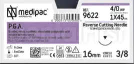 Полигликолиевая кислота (PGA) (аналог Vicryl) — Плетёная фиолетовая синтетическая рассасывающаяся нить из полигликолевой кислоты, покрытая кополимером PDA-PCI