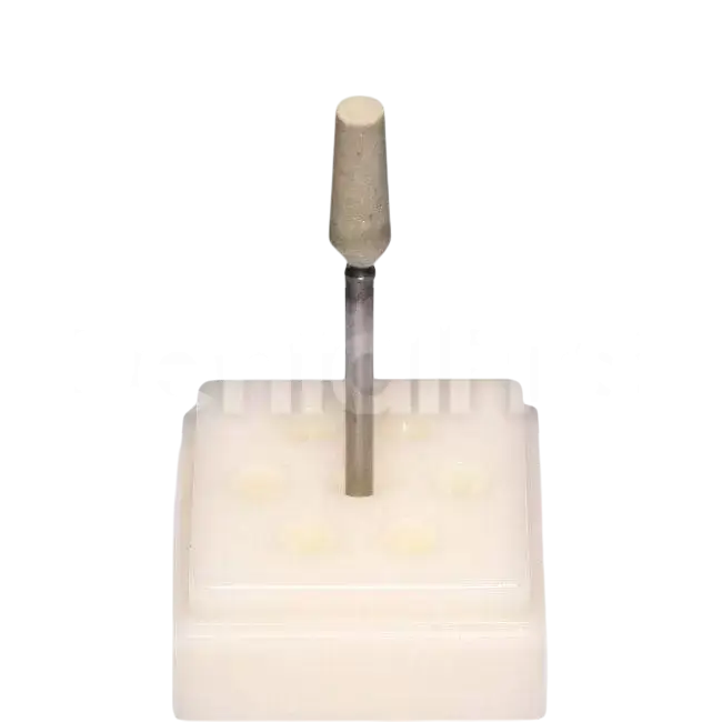 Полир силикон-карбидный с добавлением керамики для обработки циркона конический от фирмы Sigema - специализированный вращающийся инструмент для высокоточной и деликатной обработки циркониевых и керамических реставраций. Обеспечивает эффективное, ровное шлифование с минимальным риском повреждения поверхности протезов, что способствует качественной и долговечной клинической реставрации, применим в зуботехнических лабораториях и стоматологических клиниках.
