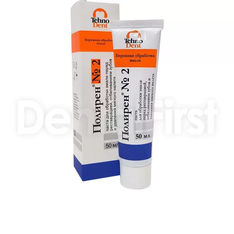 - Паста «Полирен № 2» предназначена для обработки эмали перед реставрацией или отбеливанием зубов, перед проведением герметизации фиссур, для удаления мягкого налета, пелликул, а также для профилактики кариеса (профессиональная чистка зубов).