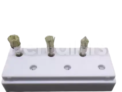• Разнообразие видов щёток с натуральными и синтетическими волокнами, что позволяет подобрать оптимальный инструмент под конкретную клиническую задачу и материал реставрации;