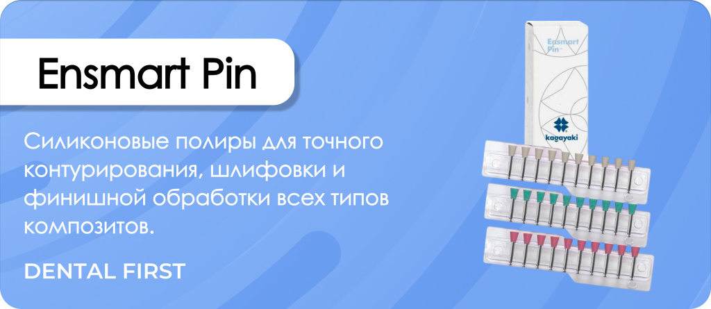 Полиры силиконовые Ensmart Pin Чашка от компании Kagayaki - это специализированный набор силиконовых полировочных насадок различных абразивностей для тщательной финишной обработки и придания блеска композитным реставрациям и другим стоматологическим поверхностям. Этот комплект обеспечивает высокую эффективность удаления микронеровностей при минимальном нагреве ткани и материала, гарантируя гладкую и эстетически привлекательную поверхность, что значительно повышает долговечность реставраций и комфорт пациента.