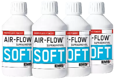 Air-Flow Soft - это профилактический, полировальный порошок с глицином для обработки зубов пациентам с чувствительным пародонтом, для аппаратов Air Flow. Производитель: EMS, Швейцария.