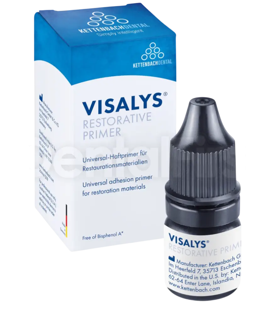 Визалис Ресторатив Праймер (4 мл) от компании Kettenbach Dental - это однокомпонентный самопротравливающий праймер для создания адгезивных поверхностей на различных субстратах (металле, композите, силикатной и оксидной керамике). Обеспечивает надёжное сцепление реставрационных материалов с подложкой, подходит для обработки поверхностей из металлокерамики, силикатной, оксидной керамики и композитов при фиксации протезов и ремонте реставраций. Не содержит BPA и прекурсоров BPA.