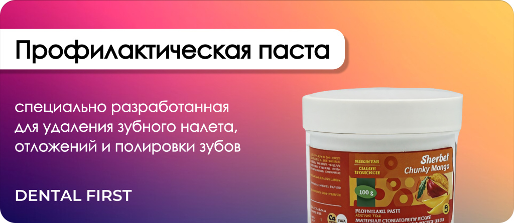 Sherbet - это профессиональная профилактическая паста без фтора, специально разработанная для удаления зубного налета, отложений и полировки зубов. Благодаря своему уникальному составу, она идеально подходит для подготовки поверхности зубов перед пломбированием, реставрацией и отбеливанием. Паста эффективно удаляет загрязнения, не содержит красителей и фтора, что делает ее незаменимой для процедур, требующих раскрытия эмалевых призм.