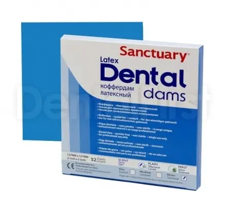 Коффердам Sanctuary латексный –это неопудренные тонкие квадратные пластины, изготовленные из латекса. Пластины коффердама предназначены для использования во время стоматологических процедур для изоляции необходимого зуба, чтоб обеспечить лечение зубов и непрерывность стоматологической процедуры.