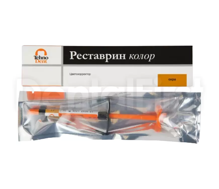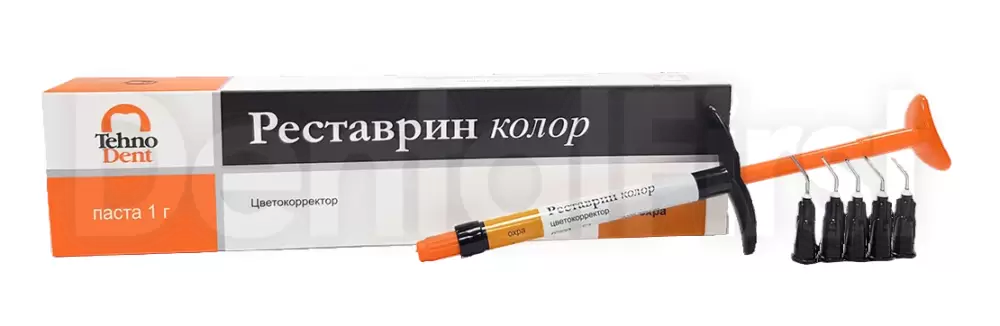 Комплект композитного материала для восстановления и реставрации твердых тканей зубов "Реставрин" по ТУ 9391-020-67200978-2012: Реставрин колор - паста коричневая; шприц 1 г