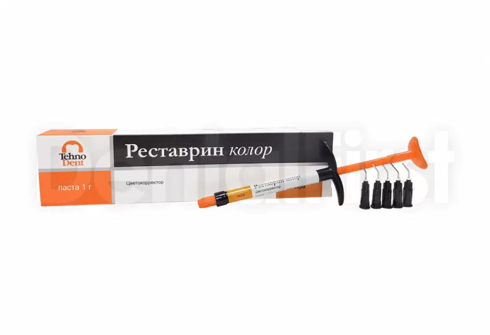 Реставрин Колор - наногибридный цветной композитный материал светового отверждения для реставрации фронтальных и боковых зубок. Производитель: ТехноДент, Россия.