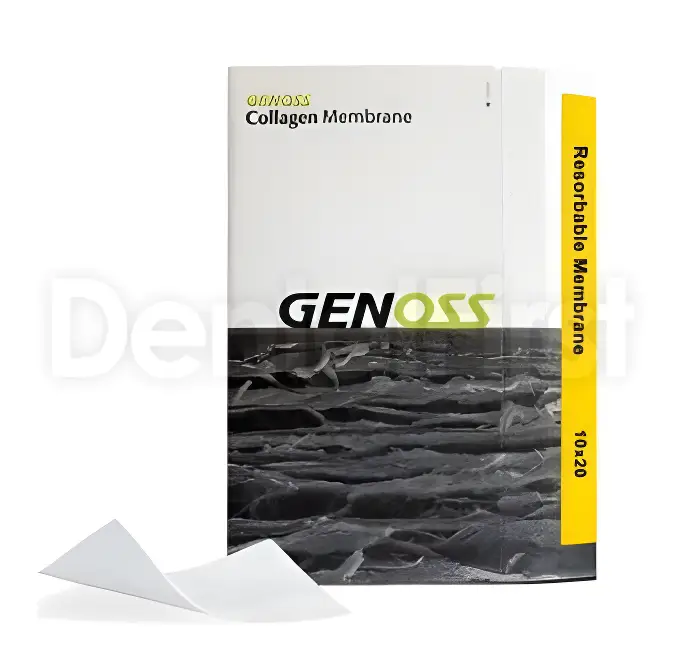 Collagen Membrane от производителя Genoss - резорбируемая коллагеновая мембрана, изготовленная из бычьего коллагена I типа, предназначенная для процедур направленной костной регенерации. Обладает уникальной способностью эпителизироваться даже при открытом способе применения, что упрощает процесс заживления и повышает прогнозируемость результата.