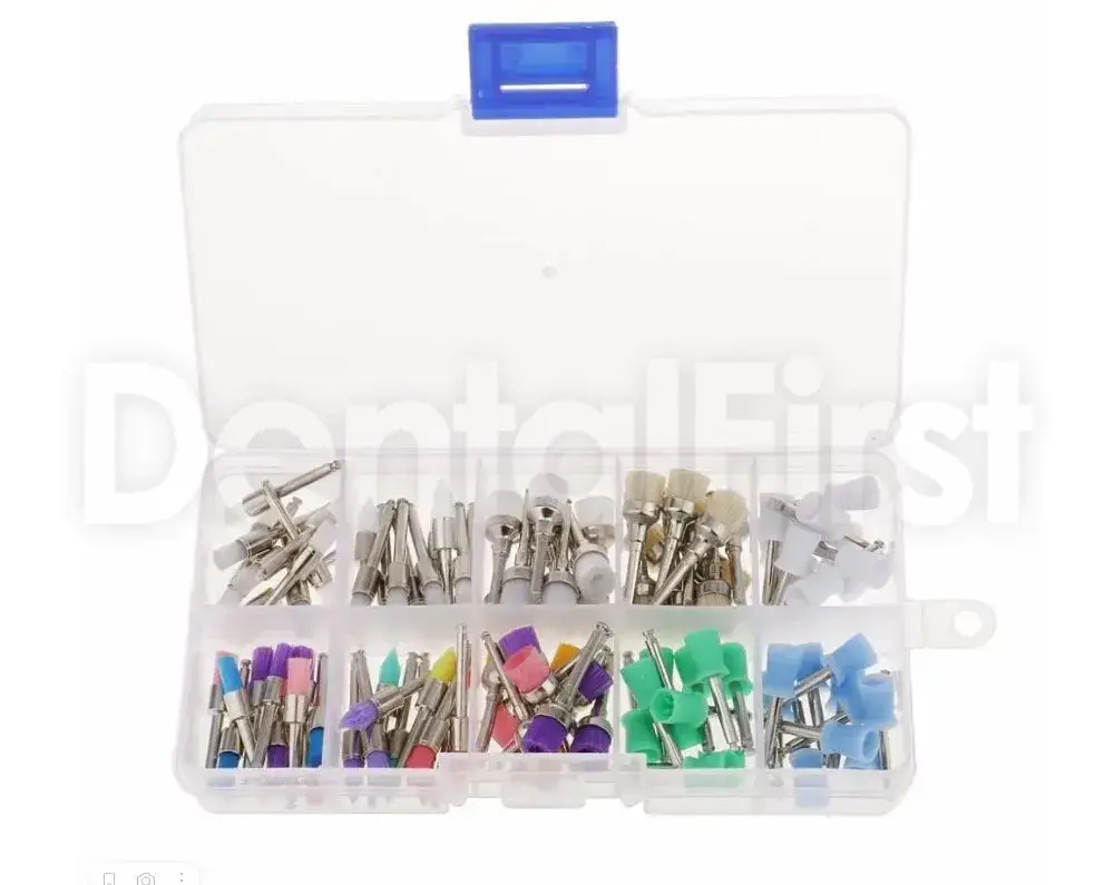 - Комплектация несколькими видами щёток позволяет подобрать оптимальный тип полировки под конкретный материал и клиническую задачу, что повышает качество реставрации.