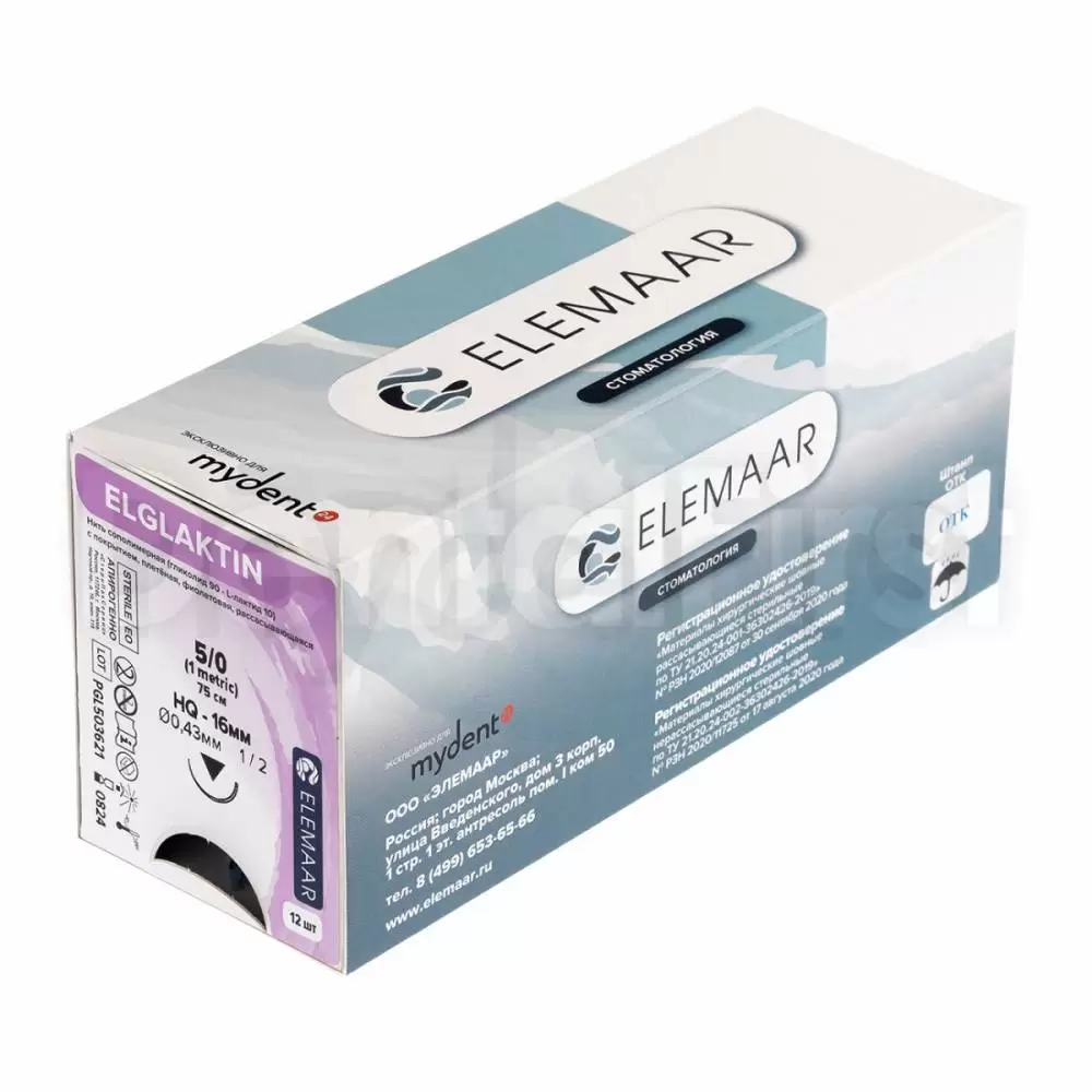 Шовный материал ELGLAKTIN 5/0 (12 шт, 75 см, 1/2, 16 мм, обратно-режущая)