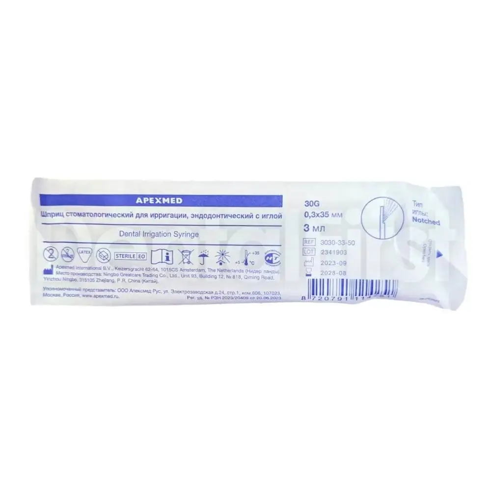 Шприц для промывания каналов со сменной иглой эндодонтической, одноразовой по ТУ 9398-007-59004022-2011. РУ № РЗН 2013/26