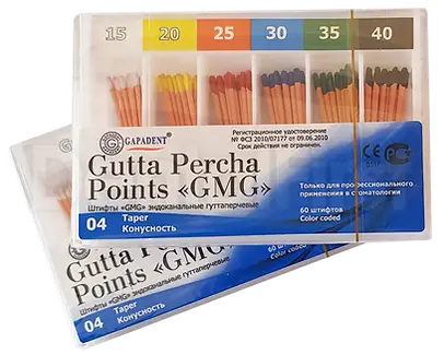 Гуттаперчевые штифты для пломбирования корневых каналов зубов в эндодонтии.