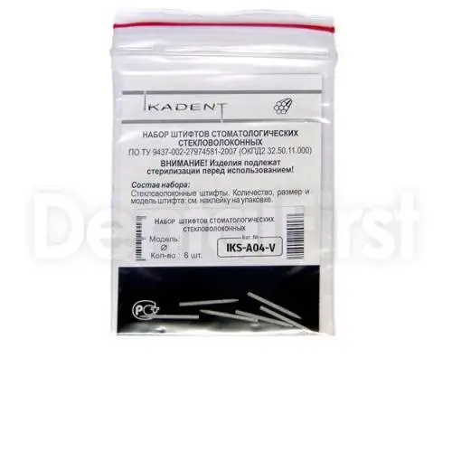 Штифты стекловолоконные IKS-A04-V (6 шт.), Ikadent (Икадент) — высококачественные цилиндрические заточенные штифты, изготовленные из прочного стекловолокна, предназначенные для эффективного восстановления коронковой части зуба и обеспечения надежной фиксации в корневом канале. Отличаются высокой прочностью, устойчивостью к излому и отличной совместимостью с различными адгезивными материалами. Легкие в использовании и обработке, обеспечивают надежную опору для реставрации.