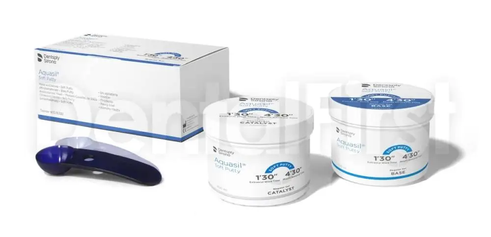 Aquasil Soft Putty - оттискной материал очень высокой вязкости с нормальной скоростью отверждения и оптимальной эластичностью для легкого извлечения из поднутрений, это идеальный материал для техники двойного замешивания (double mix technique). Так же может быть использован как базовый материал в двухфазной (putty/wash) технике снятия оттисков. Аквасил Софт Патти подходят для любой высокоточной техники снятия оттисков, где требуются отличные гидрофильные характеристики, размерная точность, высокая прочность на разрыв и устойчивость к деформациям. Оттискные материалы соответствуют требованиям к стоматологическим эластичным оттискным материалам ISO 4823.