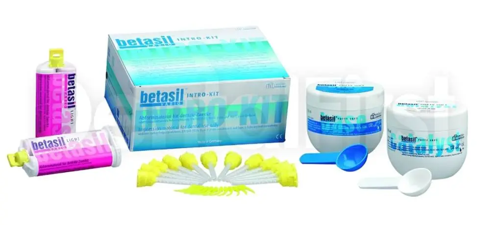 Betasil vario Putty intro-kit набор А-силиконовый слепочный материал (База и катализатор рutty по 300мл, корригирующий слой vario light 2x 50, 12 смесительных насадок, 12 интраоральных насадок.
