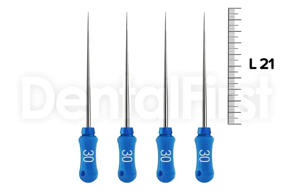 ! Инструмент для работы техникой латеральной конденсации, предусматривающей внесение основного гуттаперчивого штифта, утрамбовывание его в боковом направлении и заполнение канала дополнительными штифтами.