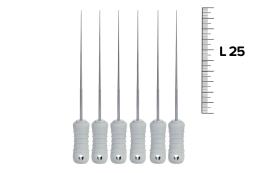 Spreader сталь 25мм №40 - ручной стоматологический эндодонтический инструмент с рабочей частью в форме гладкого усечённого стержня с конусообразным концом. Материал рабочей части - нержавеющая сталь, материал рукоятки - пластик (полибутилентерефталат). Латеральная конденсация разогретой гуттаперчи в корневом канале.