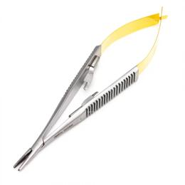 7222 ₽ Бонус: 72.22 руб. Иглодержатель микрохирургический Кастровьехо (Castroviejo) TC Flat Gold, 14 см, изогнутый