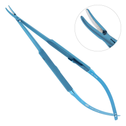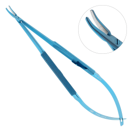 Иглодержатель микрохирургический трехшарнирный, прямая рабочая часть, для иглы 6/0, 7/0 (ручка 8,5мм, раб. часть 1мм, длина 180мм, замок - L, титан)