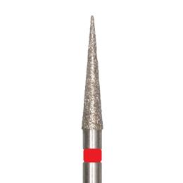 Бор алмазный для турбинного наконечника. Общая длина 19 мм, диаметр рабочей части 1,8 мм. Зернистость тонкая 27-76 мкм, цветовая кодировка красная. В упаковке 5 шт. Форма: конус с закругленным концом. Артикул 850F.314.018