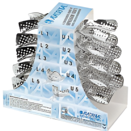 Ложка слепочная с перфорацией без бортиков алюминиевая, набор 12 штук. (низ: XL, L, M, S, XS, XXS, верх: XL, L, M, S, XS, XXS ). Подходят для имплантов