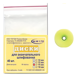 Диски шлифовальные на лавсановой основе с металлической круглой втулкой № HK1.733-14 для окончательного шлифования. Удобны для обработки пломб из композитных материалов на фронтальных зубах, а также на проксимальных, вестибулярных, язычных и небных п
