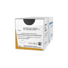 Бонус: 26.20 руб. Полигликолид-капролактон мононить расс., фиолет., USP 6-0 (М0,7), 45см, реж/1, 3/8,12мм