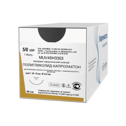 Бонус: 34 руб. PMV45H3303 ПОЛИГЛИКОЛИД, нить расс., плетеная, с покрытием, фиолетовая, USP 5-0 (М1), 45см, реж/1, 3