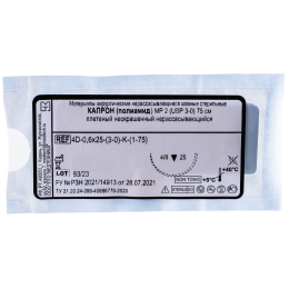 Капрон (полиамид) плетёный 75см 2/0 (3) с 1 иглой 20,25,30 мм (20 шт)
