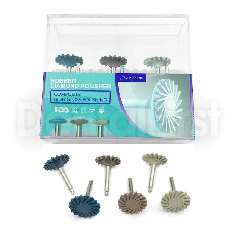 Стоматологический композитный полировальный комплект - предназначен для финишной обработки и полировки композитных реставраций. Позволяет достигать высокой гладкости поверхности, сокращая время процедур. Обеспечивает сохранение анатомической формы и эстетики реставрации в клинической практике стоматологии.