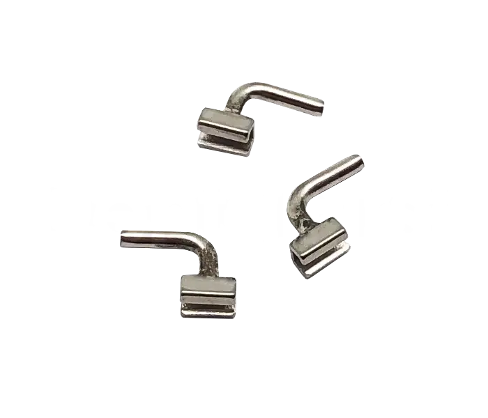 Стопор с крючком открытый (Forestadent) - ортодонтический компонент для фиксации дуг и аксессуаров в брекет-системах. Используется для надежного удержания дуг на дугообразных проволоках диаметром 0,22 мм, обеспечивая точность и стабильность конструкции. Изготовлен из высококачественного медицинского металла, устойчивого к коррозии и многократной стерилизации. Открытая конструкция крючка облегчает установку и регулировку, повышая эффективность работы ортодонта.