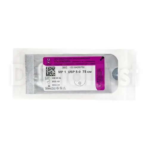 4355 ₽ Бонус: 43.55 руб. УЛЬТРАСОРБ мононить фиолетовая USP 4/0, 75см, с иглой, DR(кол.3/8) -15мм. (25шт.)