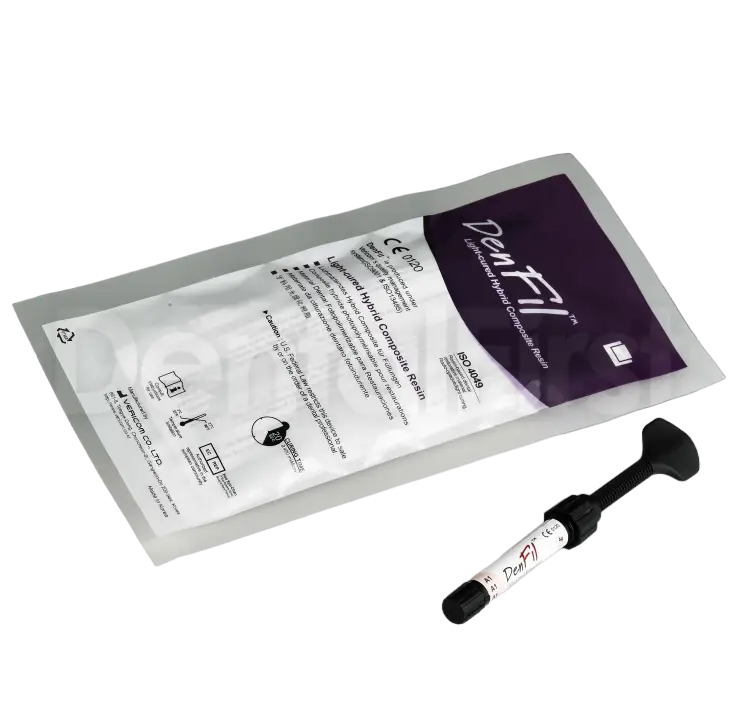 Denfil Рефил 1 x 4 г A3 композитный светоотверждаемый материал. Светоотверждаемый микрогибридный материал DenFil подходит для реставрации фронтальных и жевательных зубов. Обладает следующими характеристиками: Минимальная усадка. Отличное краевое прилегание. Рентгеноконтрастность. Обладая оптимальной вязкостью, материал весьма удобен в использовании. Не меняет цвет после полимеризации. Благодаря оптимальной полимеризационной системе, материал обладает высокой прочностью и устойчивостью к истиранию. Легко поддаётся полировке.