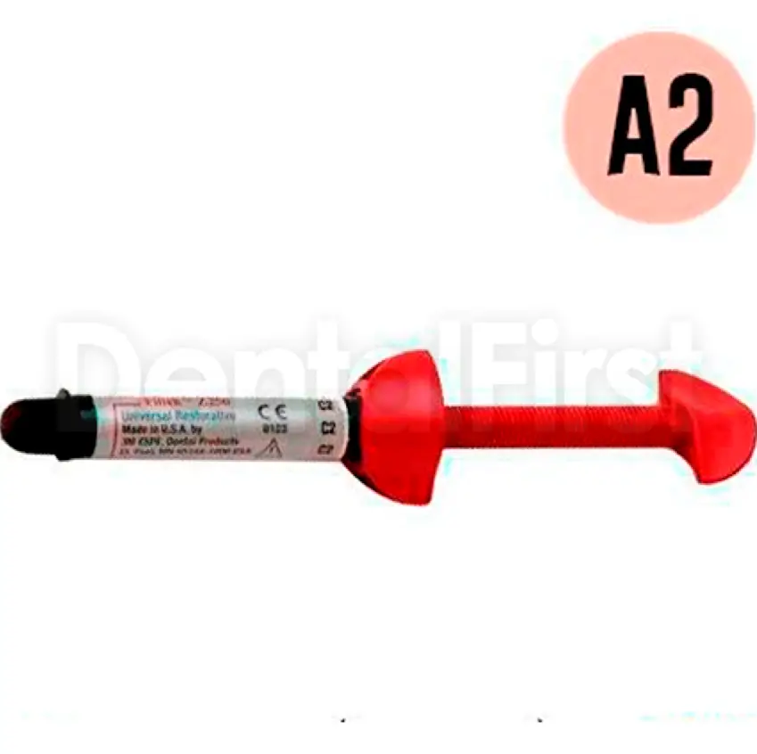 Филтек Z250 A2 (Filtek Z250 A2) – пломбировочный материал, который имеет хорошую плотность, что позволяет ему хорошо сцепляться с краями зубов. Этот пломбировочный материал применяют в так называемой послойной технике, когда пломба наращивается и для этого используется больше одного слоя. Данный материал минимизирует повторное появление кариеса практически до нуля. Пломбировочный материал 3M ESPE Филтек Z250 относится к микрогибридным композитам. Он также используется для пломбирования всех видов кариозных полостей. Композит является микрогибридным веществом, в состав которого входят следующие разновидности органических смол: БИС-ЭМА, БИС-ГМА, УДМА. Композит имеет 15 разнообразных оттенков, которые не разделены на разновидности, в отличие от массы Ultimate. Кроме матрицы серия Z250 имеет иной наполнитель. Там содержатся частицы размером 0,5-5 мкм. Форма выпуска – шприц 4 г. Количество цветовых вариантов значительно меньше, разделения на дентин, эмаль и боди отсутствует.