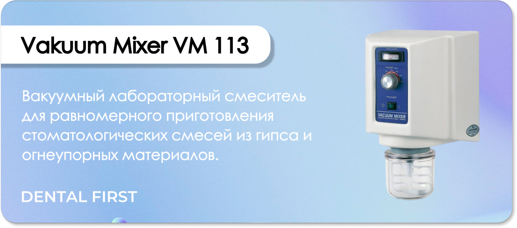 Vakuum Mixer VM 113 обеспечивает стабильное качество смесей, повышает точность и долговечность зубных конструкций и оптимизирует рабочие процессы в лаборатории.
