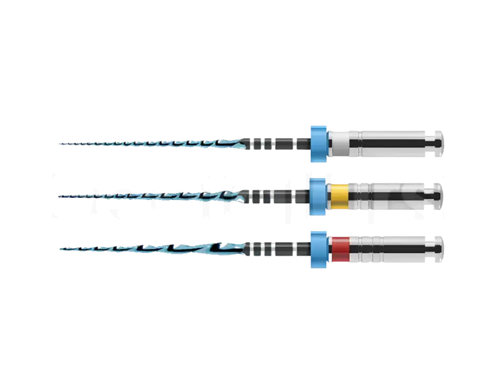 Меньшая вероятность образования пробки благодаря S-образному сечению. Файл почти не соприкасается со стенками корневого канала, сохраняя больше пространства для вывода дентинного опила. S-образное поперечное сечение инструмента образовано двумя активными режущими лезвиями, которые придают ему именно такую специфическую форму. Каждое лезвие представляет собой длинную, почти вертикальную спираль, что придает инструменту двойной режущий эффект и обеспечивает продвижение вдоль канала.