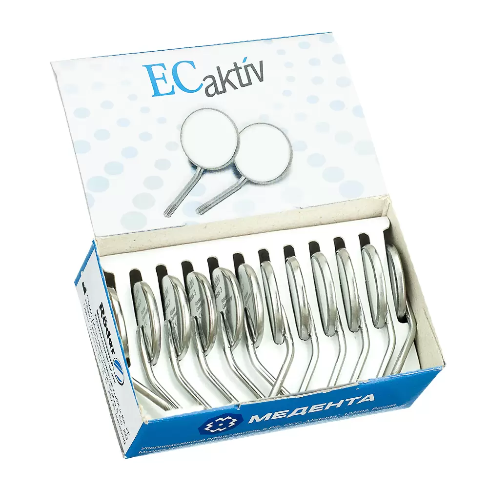 Зеркала стоматологические многократного использования EC aktiv в стальном корпусе со стержнем, с односторонней стеклянной плоской отражающей поверхностью.