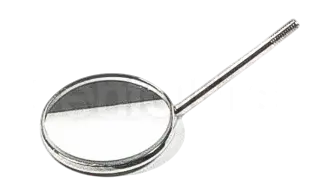 Зеркало стоматологическое б/ручки без увеличения 22мм/ Mouth Mirror арт. П3244-22 – представляет собой небольшое круглое плоское стеклянное зеркало, укрепленное на конце металлического стержня, предназначенное для осмотра зубов и полости рта