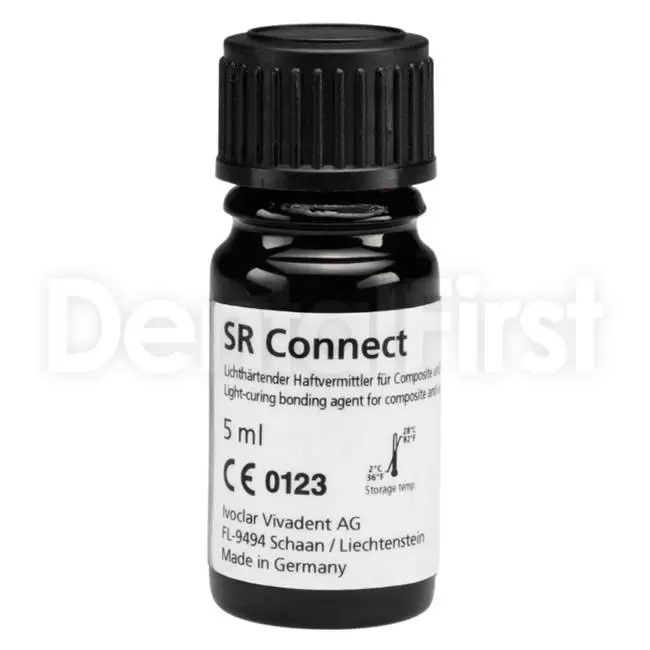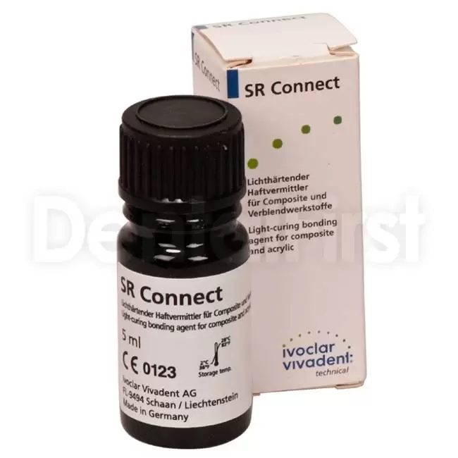 SR Connect адгезив, представляет собой светоотверждаемый кондиционер для создания связи между светоотверждаемыми облицовочными пластмассами на основе PMMA горячей и холодной полимеризации и пластмассовыми зубами для протезов
