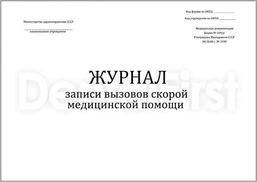 Журнал записи вызовов скорой помощи Ф109/у от компании Сити Бланк - специализированный регистр, предназначенный для систематического учета поступивших вызовов и оказания экстренной медицинской помощи. Он ведется на станциях и в отделениях скорой помощи и позволяет фиксировать полную цепочку событий - от момента обращения до результатов оказанных мер и направления пациента.