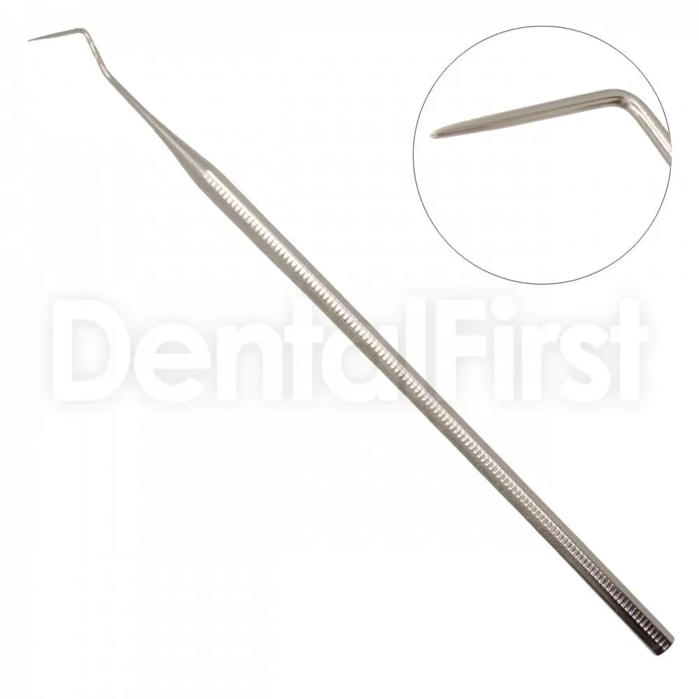 Зонд зубной № 9 — это профессиональный стоматологический инструмент, предназначенный для диагностики и выявления кариозных поражений, скрытых полостей, дефектов пломб и других патологий твердых тканей зуба. Изогнутая рабочая часть под углом 55 обеспечивает удобный доступ даже к труднодоступным участкам полости рта.