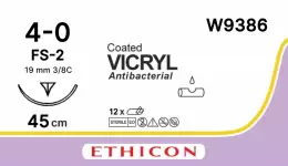 3920 ₽ Бонус: 39.20 руб. Викрил 4/0 (45см, обратно-реж.3/8 (12шт), W9386 Vicryl - Синтетический рассасывающийся полифиламентный шовный материал Vicryl (Викрил) - Нить стерильная хирургическая, синтетическая, рассасывающаяся, плетеная, изготовленная из сополимера на основе полиглактина 910 (гл