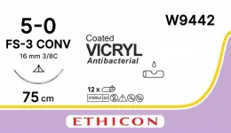 4325 ₽ Бонус: 43.25 руб. Викрил 5/0, 75см, игла реж.3/8 (12шт), W9442 Vicryl - Синтетический рассасывающийся полифиламентный шовный материал Vicryl (Викрил) - Нить стерильная хирургическая, синтетическая, рассасывающаяся, плетеная, изготовленная из сополимера на основе полиглактина 910 (гл