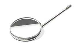 Зеркало стоматологическое увеличивающее, 24 мм представляет собой небольшое круглое плоское стеклянное зеркало, укрепленное на конце металлического стержня.