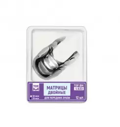 234 ₽ 260 ₽ №1.533 Матрицы двойные для передних зубов 12 шт. (ТОР ВМ) Матрицы двойные для передних зубов №1.533 удобны для реставрации апроксимальных и цервикальных поверхностей передних зубов. Комплектация12 шт