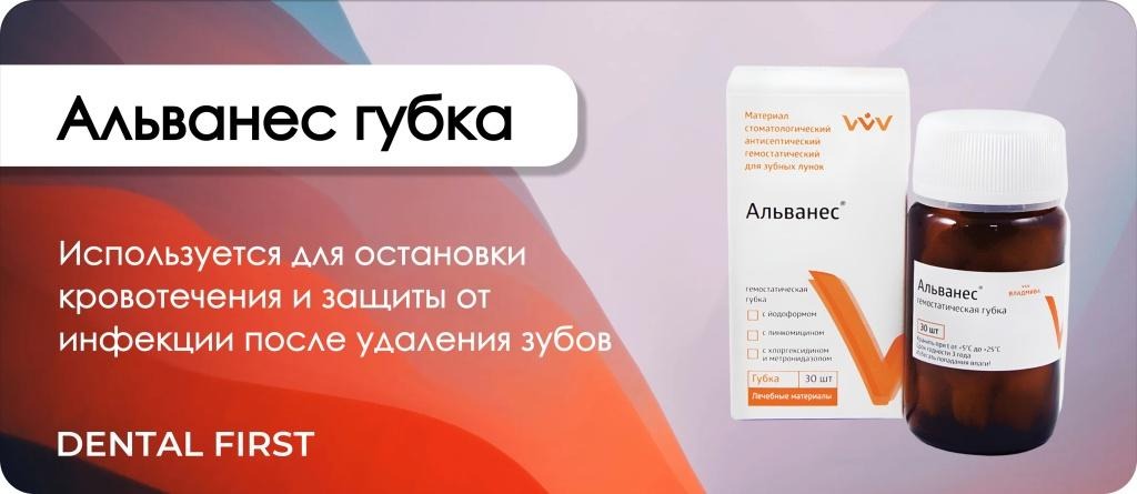 Альванес - яркий представитель комбинированных препаратов. Коллагеновая основа обеспечивает надежный гемостаз, а включенный в состав линкомицин (антибиотик широкого спектра) создает высокую терапевтическую концентрацию непосредственно в очаге поражения, предотвращая развитие инфекции. Незаменим при удалении сложных «восьмерок», резекции верхушки корня и других травматичных вмешательствах.